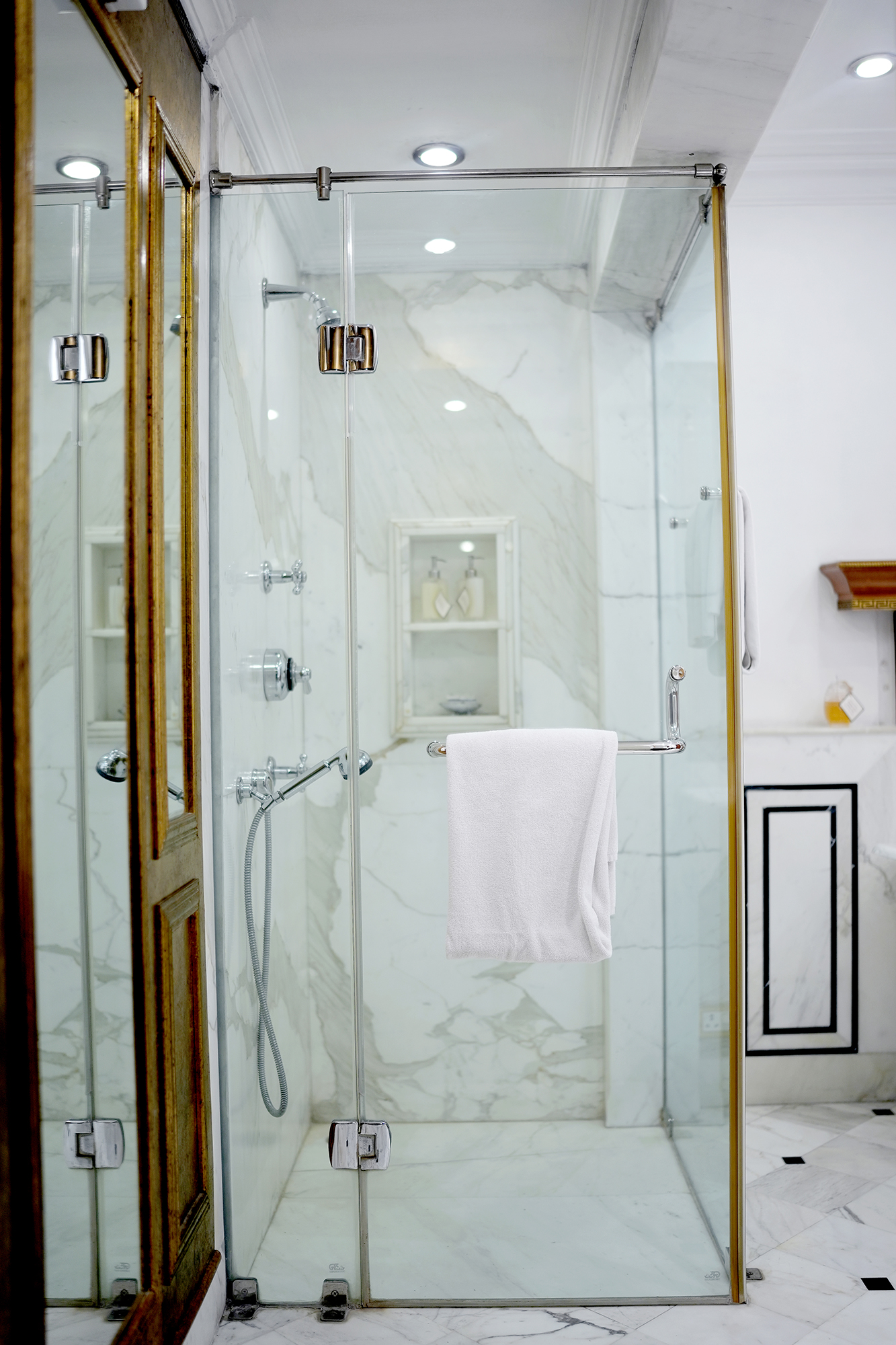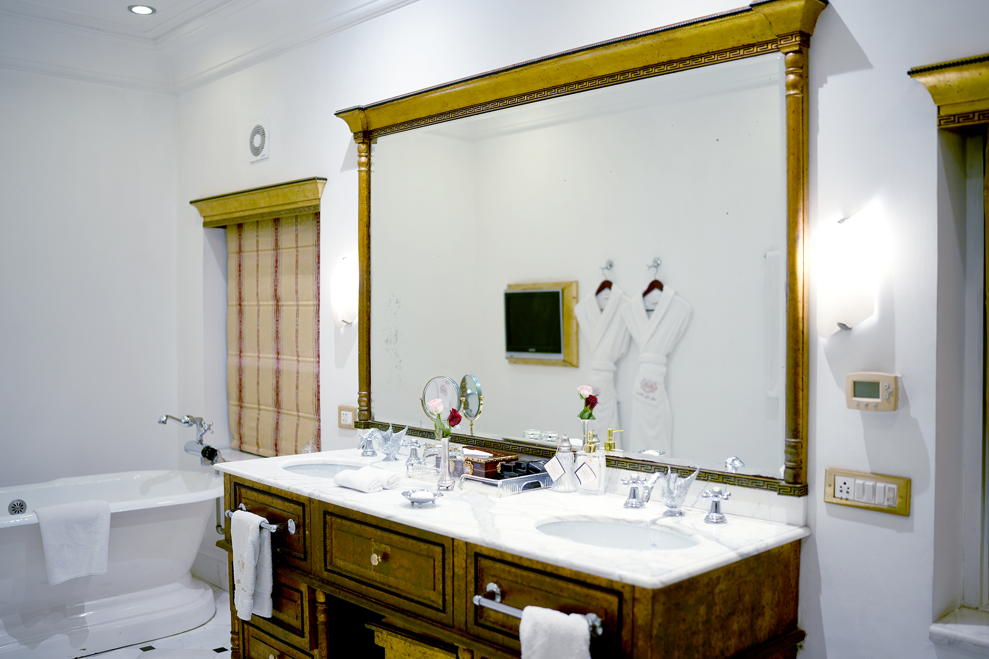 The Two-Bedroom Family Suite with Private Terrace is a haven of space, comfort, and togetherness. With two grand bedrooms, en-suite marble bathrooms, a plush living room, and a formal dining area, this suite is tailored for families seeking both connection and privacy. The hand-painted decor, antique furnishings, and rich textiles evoke a homely palace charm. The suite’s private terrace is its crown jewel — ideal for al fresco breakfasts, twilight teas, or stargazing under the Jaipur sky.