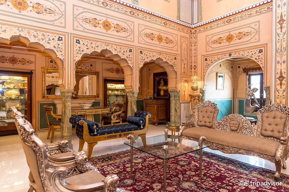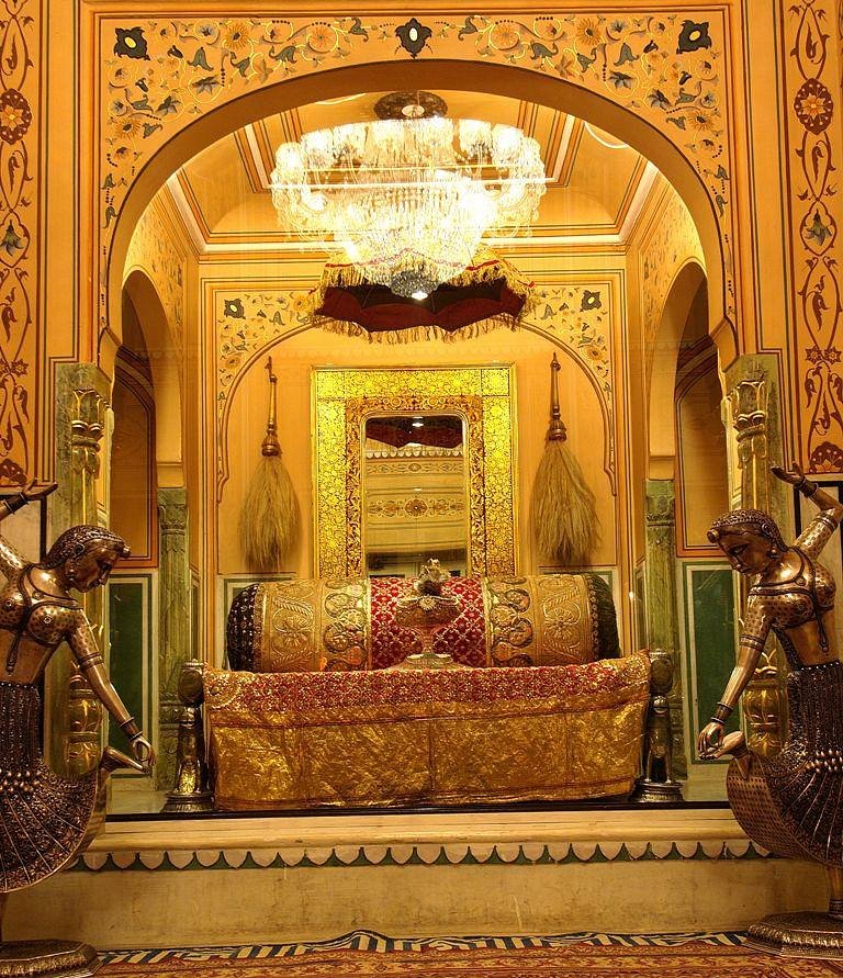 Voted the World’s Leading Suite (2007–2014), the Maharajah Pavilion is a four-story private palace within The Raj Palace. With its own Charbagh entrance and private elevator, it features four regal bedrooms, a lavish Durbar, multiple lounges, and a rooftop terrace with a Jacuzzi, spa, and swimming pool overlooking Jaipur. The second floor, once the Maharajah’s personal quarters, retains its gold-and-silver furniture, mirrorwork walls, and vaulted royal bedroom. The suite houses a priceless private museum with the original throne and royal bolsters. From butler-attended dinners to private receptions, the Pavilion is not just a stay—it’s a sovereign experience.