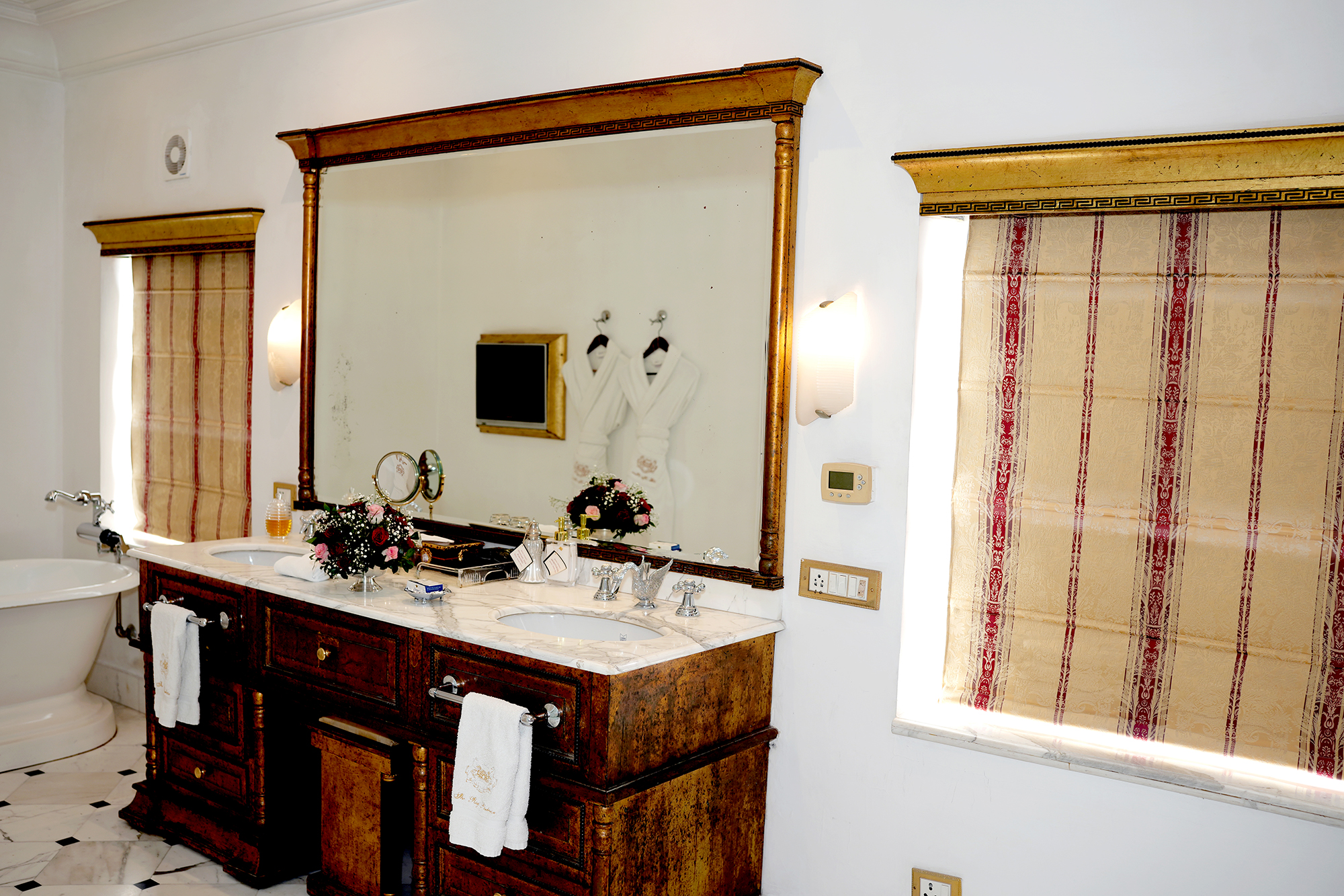 The Two-Bedroom Family Suite with Private Terrace is a haven of space, comfort, and togetherness. With two grand bedrooms, en-suite marble bathrooms, a plush living room, and a formal dining area, this suite is tailored for families seeking both connection and privacy. The hand-painted decor, antique furnishings, and rich textiles evoke a homely palace charm. The suite’s private terrace is its crown jewel — ideal for al fresco breakfasts, twilight teas, or stargazing under the Jaipur sky.