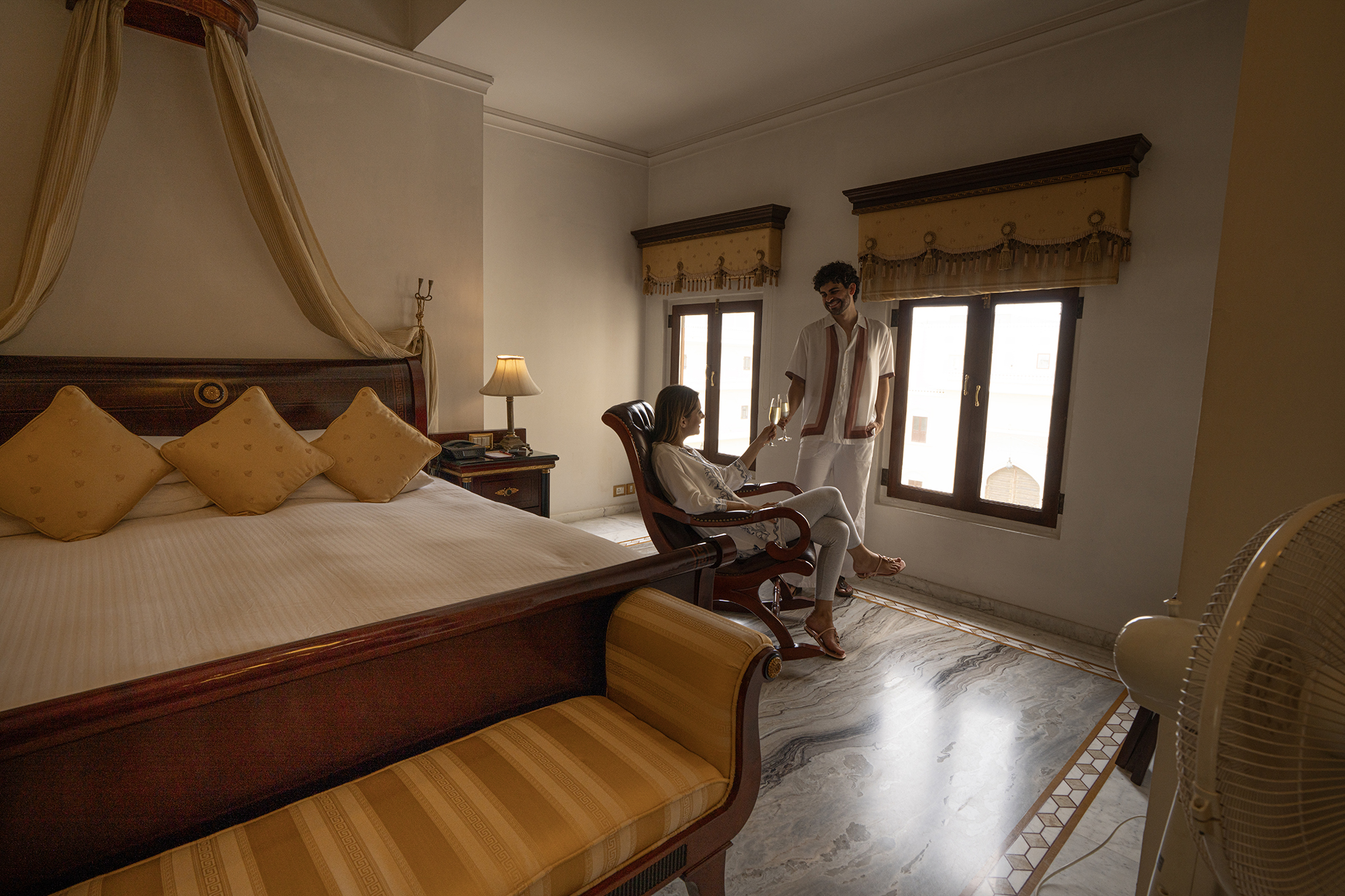 For those seeking a harmonious blend of heritage charm and modern elegance, the Premier Rooms offer a refined escape. Set apart on a dedicated floor for added privacy, each room is a cocoon of luxury—complete with plush palace-style furnishings, Italian marble flooring, and high-tech amenities. Rich textiles and royal color palettes set the tone, while a writing desk, a walk-in closet, and a deep-soak tub add thoughtful touches. Perfect for both leisure and business travelers, these rooms are designed to comfort, inspire, and indulge.
