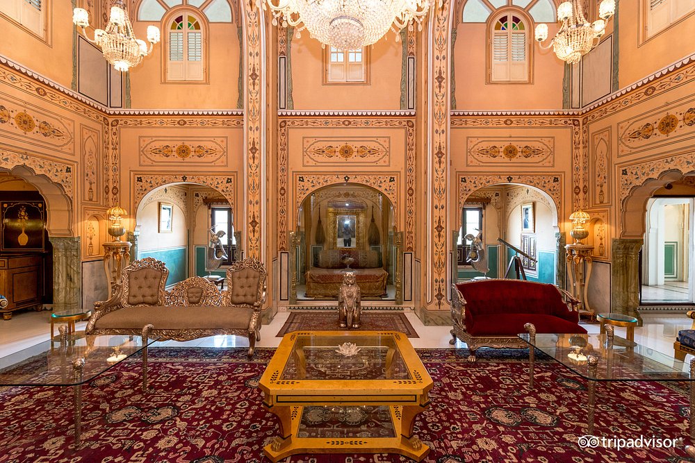 Voted the World’s Leading Suite (2007–2014), the Maharajah Pavilion is a four-story private palace within The Raj Palace. With its own Charbagh entrance and private elevator, it features four regal bedrooms, a lavish Durbar, multiple lounges, and a rooftop terrace with a Jacuzzi, spa, and swimming pool overlooking Jaipur. The second floor, once the Maharajah’s personal quarters, retains its gold-and-silver furniture, mirrorwork walls, and vaulted royal bedroom. The suite houses a priceless private museum with the original throne and royal bolsters. From butler-attended dinners to private receptions, the Pavilion is not just a stay—it’s a sovereign experience.